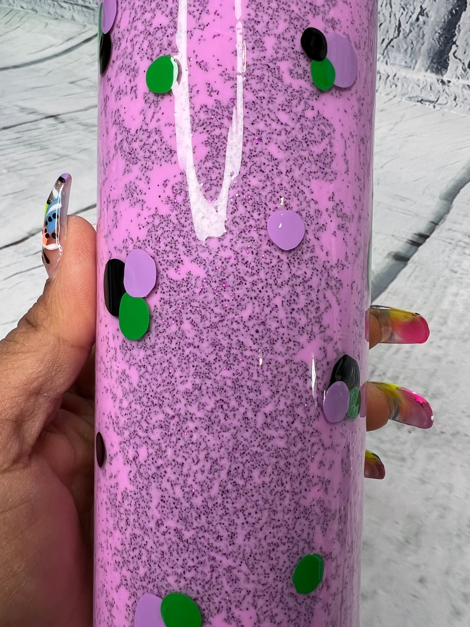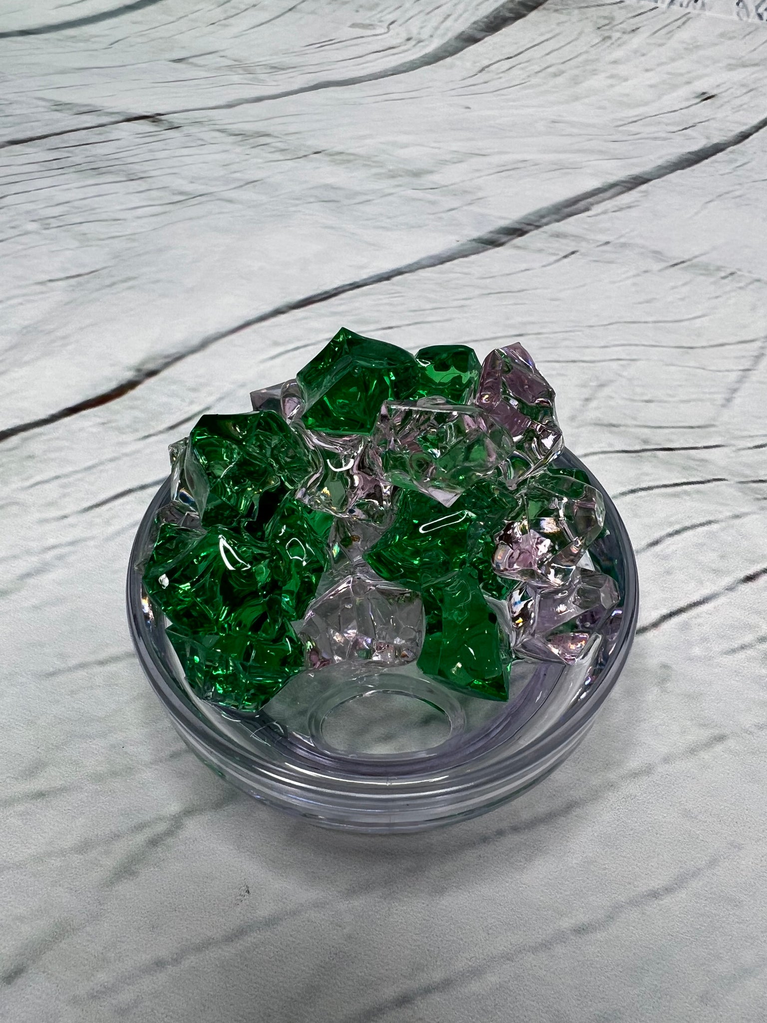 Beautifully designed for vibrance. Beautified with emerald and purple-ish ice. This tumbler was beautifully designed with you in mind. This tumbler has an 18-ounce capacity and redesigned press on lid allows you to sip directly or use the included matching straw. It is made from the highest quality crystal clear acrylic is 100% BPA free and the sleek slim body makes it comfortable to take to go. It's double wall construction provides insulation of all your hot and cold liquids, such as coffee, iced tea, water and smoothies. Its snow globe effect is beautiful. Tumbler is to be shaken, while empty, for the full effect. Tumbler is not battery operated. Tumbler is to be HANDWASHED and SIT TO DRY. I hope this tumbler is a delight for your valentine. Don't forget to check out her friends. Stay Forever Vibrant! Enjoy :)