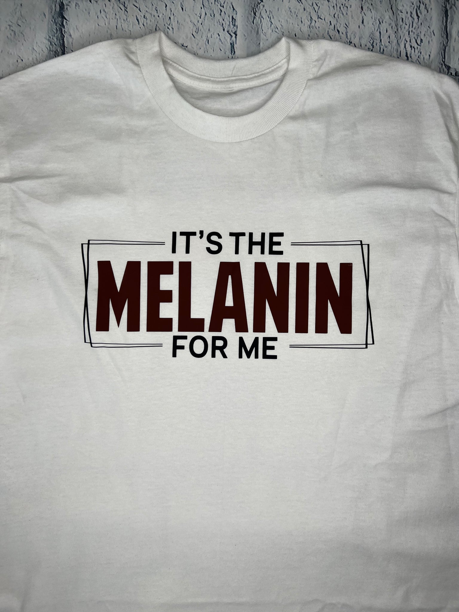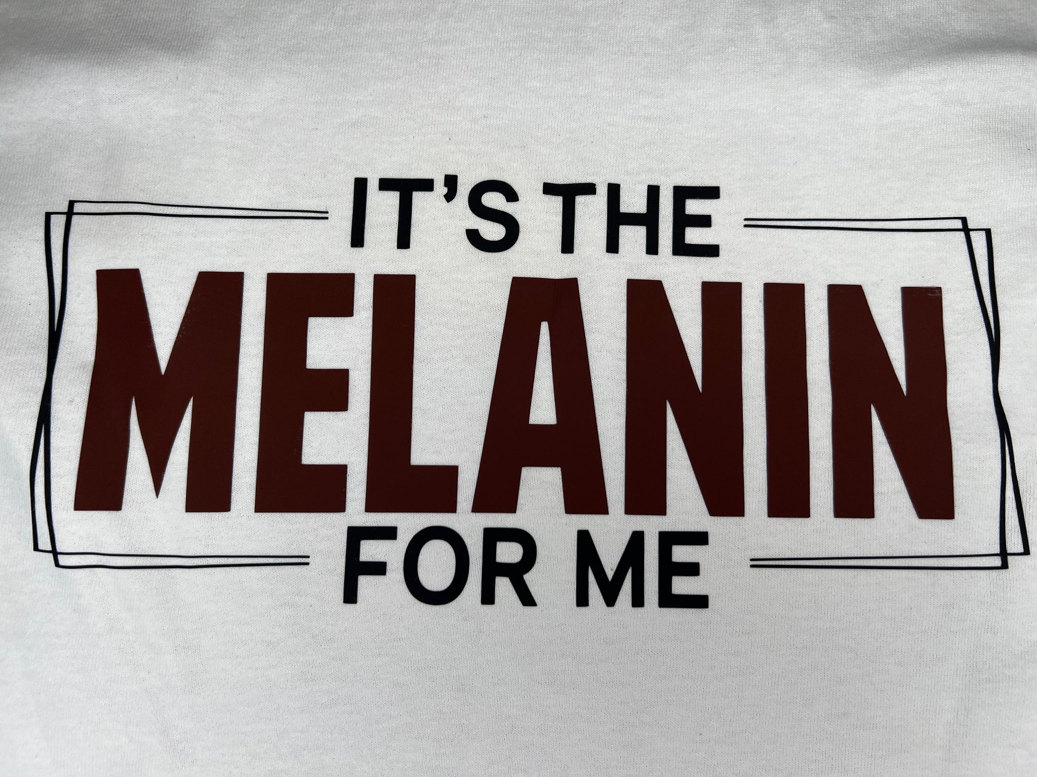 - White T-shirt with black and brown words