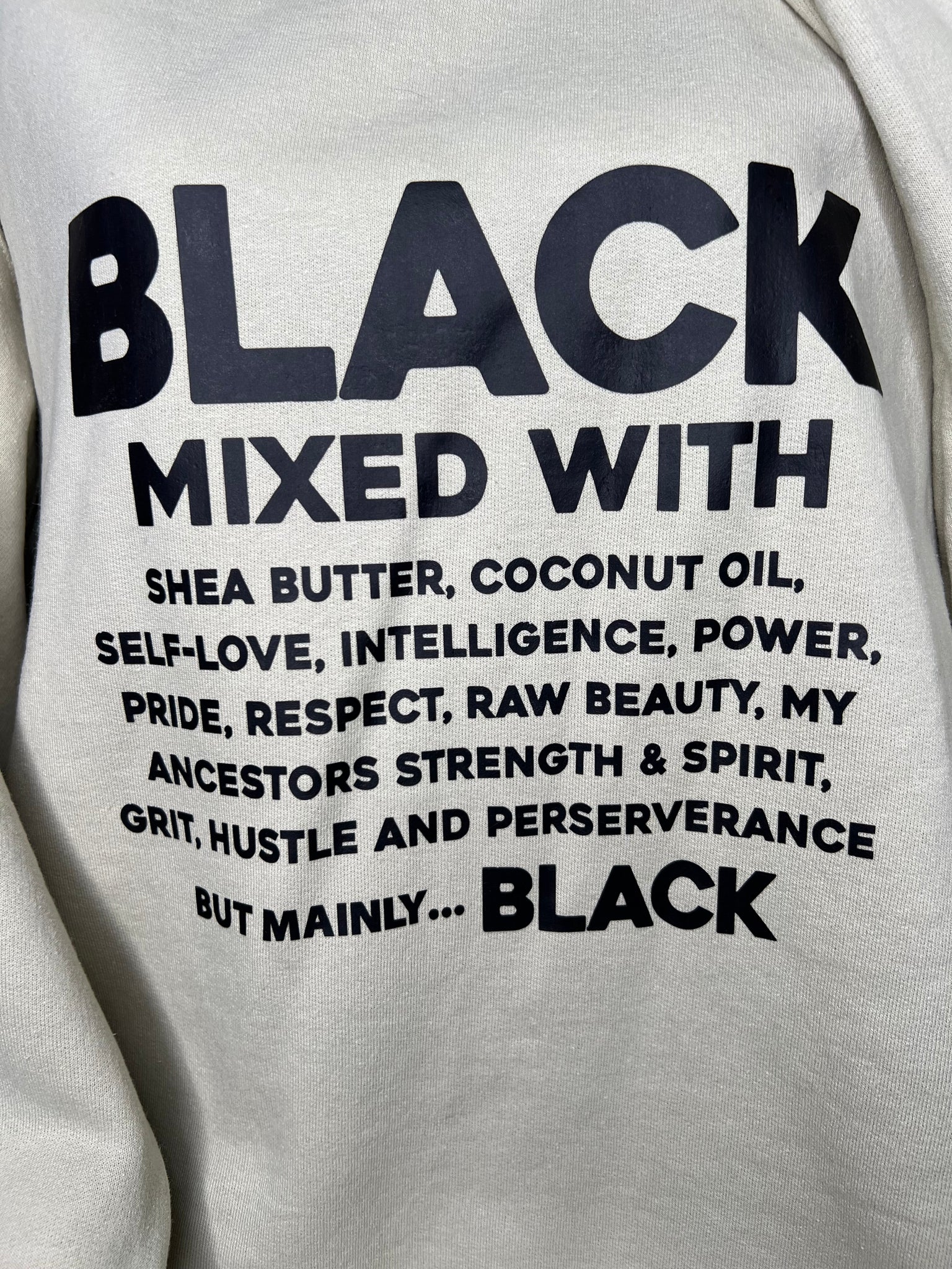 Stay warm and inspired with our 'My Ingredients' Sweater. Featuring a bold message reminding you that you are beautiful and made up of beautiful ingredients, this black sweater will keep you motivated and stylish all season long. Embrace your inner strength with this direct and inspirational piece.