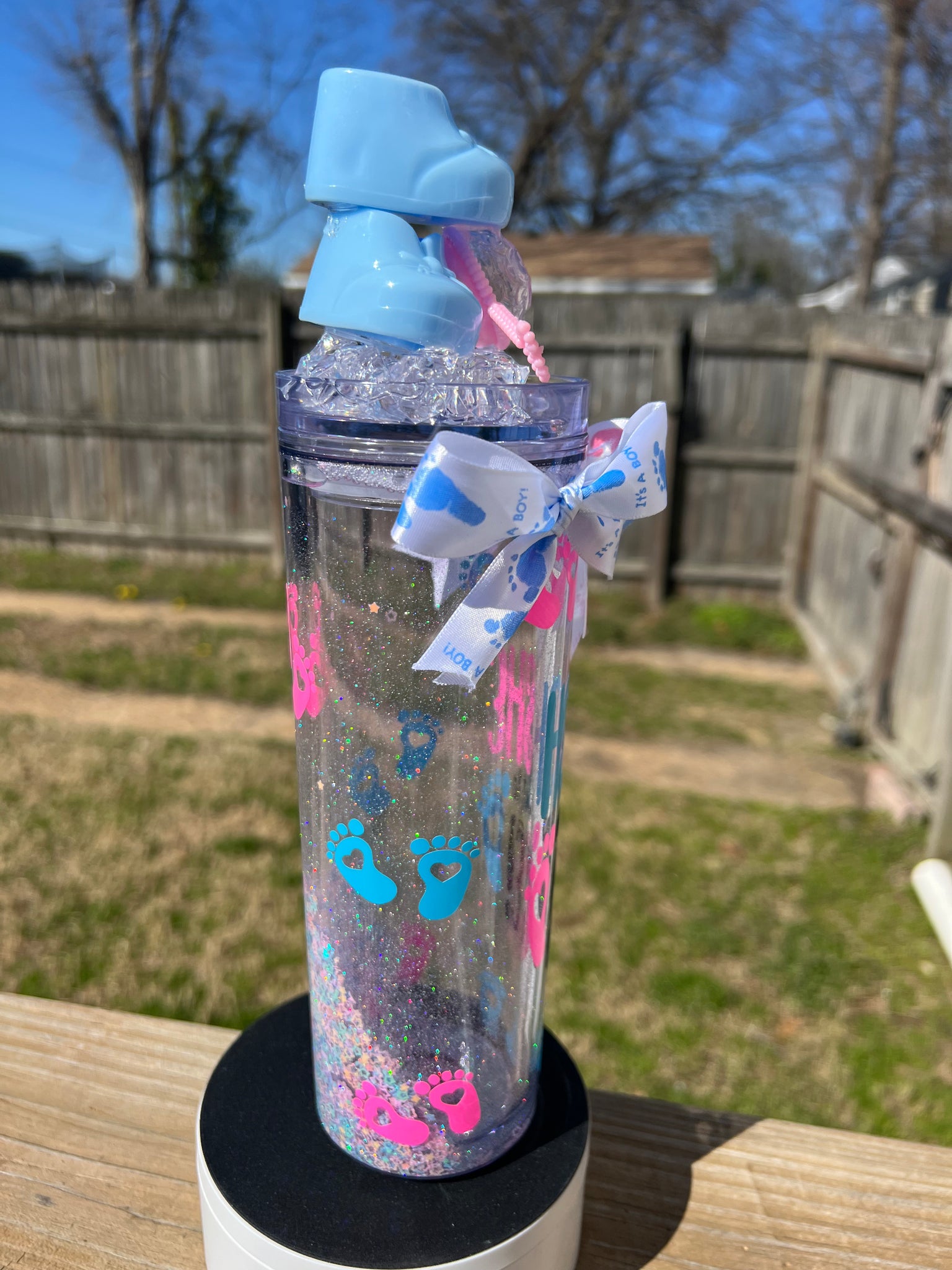 This 'Oooooh Baby' Gender Reveal Tumbler is the perfect gift for the new mom or baby shower! With a fun, gender reveal themed design featuring sparkling glitter and bright colors, this tumbler is perfect for showing off your excitement for the new addition to your family. Congratulations!