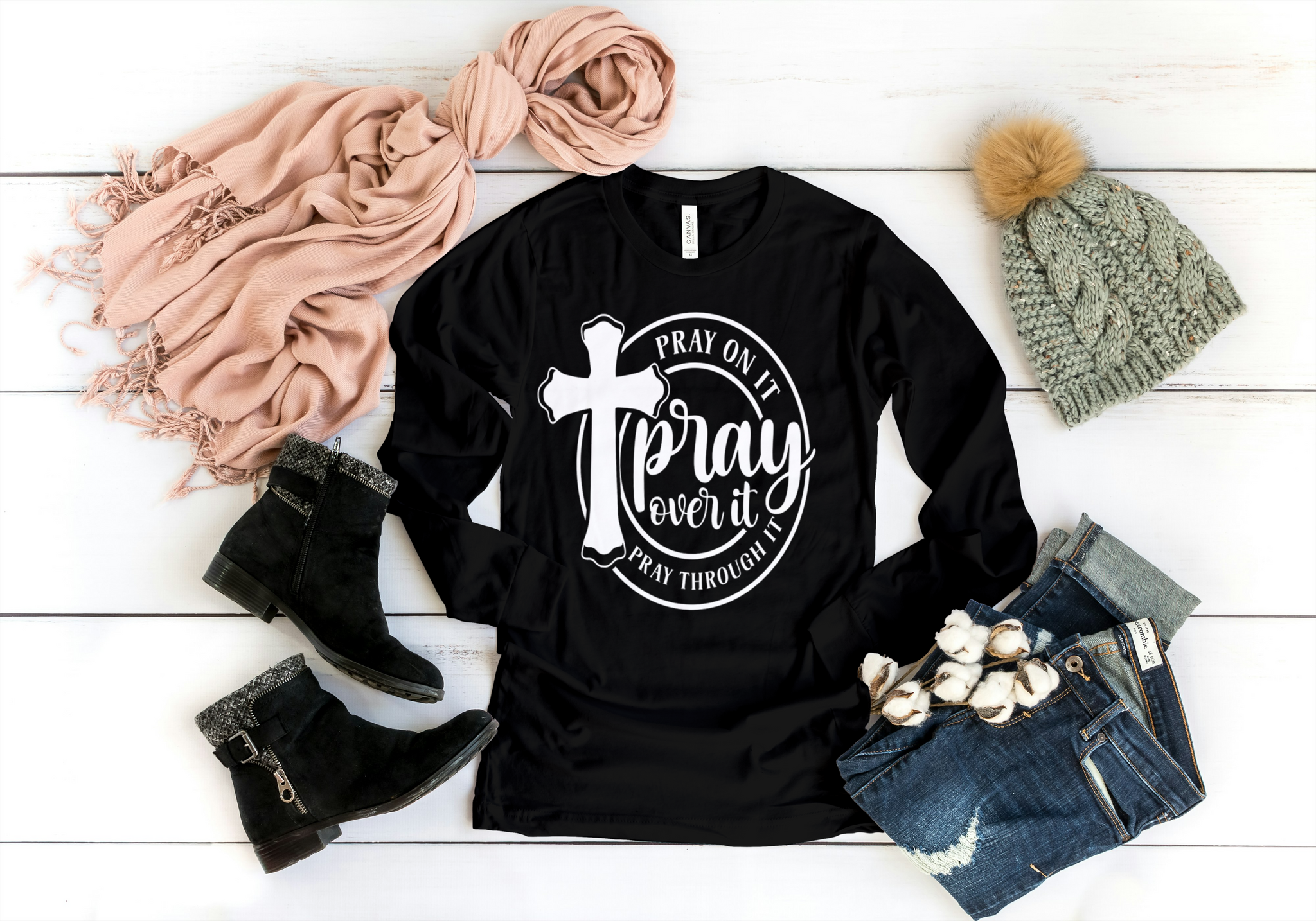 The 'Pray On It' Long Sleeve Shirt embodies a powerful message of faith and perseverance. Designed to inspire, this shirt encourages you to pray on every challenge and triumph, reminding you that with God, all things are possible. Wearing it serves as a daily affirmation that prayer changes situations and brings strength. Crafted for comfort and timeless wear, it carries a great gift of hope and encouragement for yourself or a loved one seeking spiritual motivation.