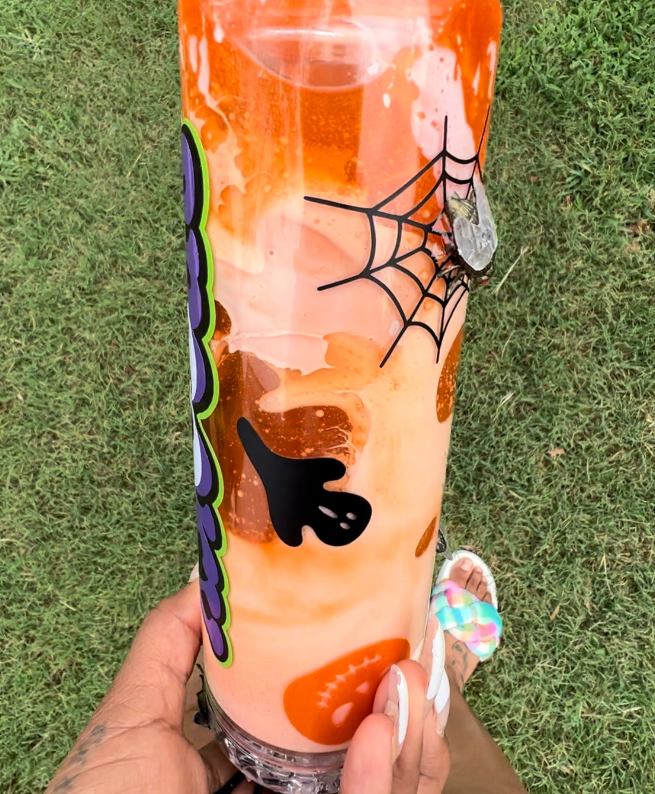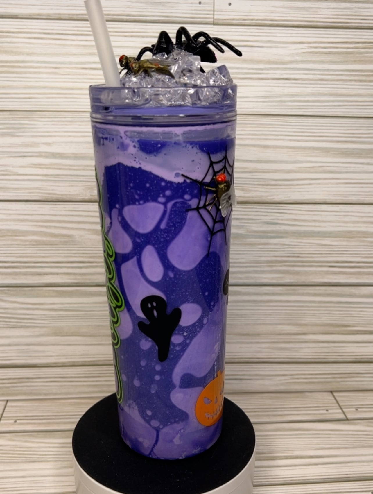 Show your Halloween spirit with 'Spooky Vibes' Halloween Tumbler! This lava lamp-style tumbler is two-toned, with spider and fly insect graphics, creating a creepy atmosphere. Make it your own unique Halloween gift for a friend or family member. Now in the new color of green.