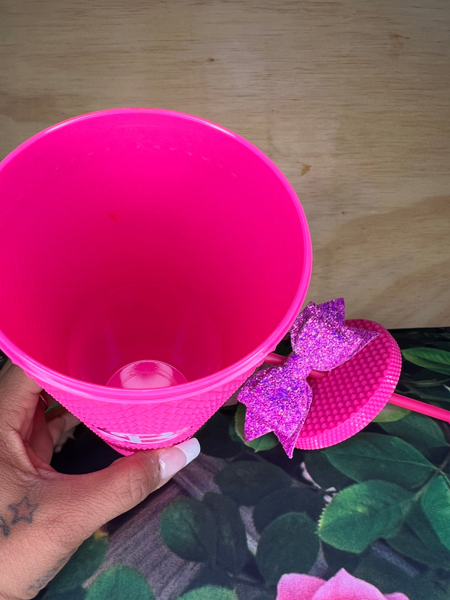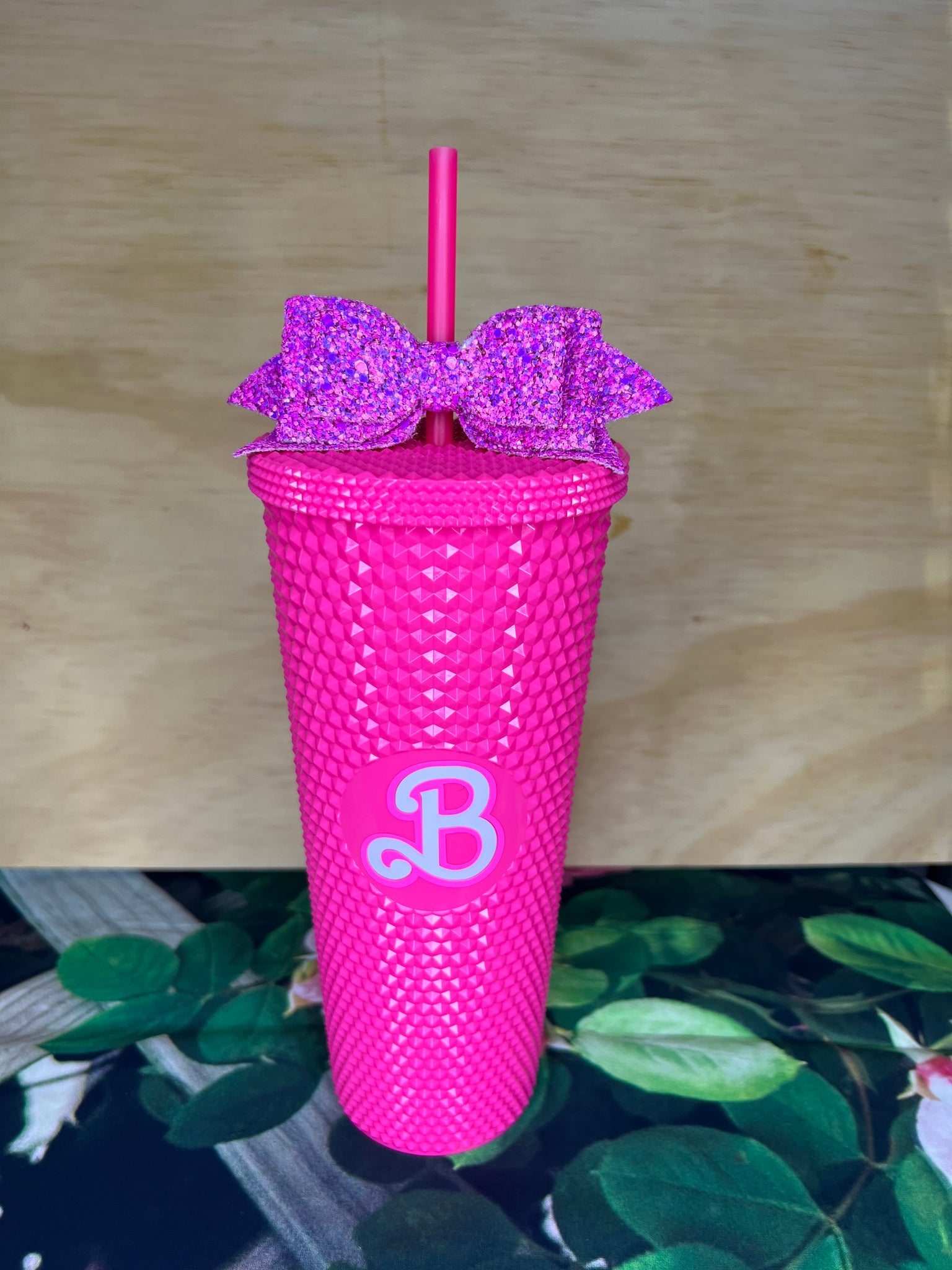 Upgrade your tumbler game with our Studded Barbie Tumbler! Featuring a barbie-themed design and a matching straw bow, this leak-proof tumbler is great for travel and the upcoming warmer seasons. Made with BPA-free materials, it's also stain-resistant and designed to keep your drinks fresh. Enhance your style and stay hydrated in a bold, bright pink. Great gift for everyone. Don't forget to get one for your little Barbie fan.